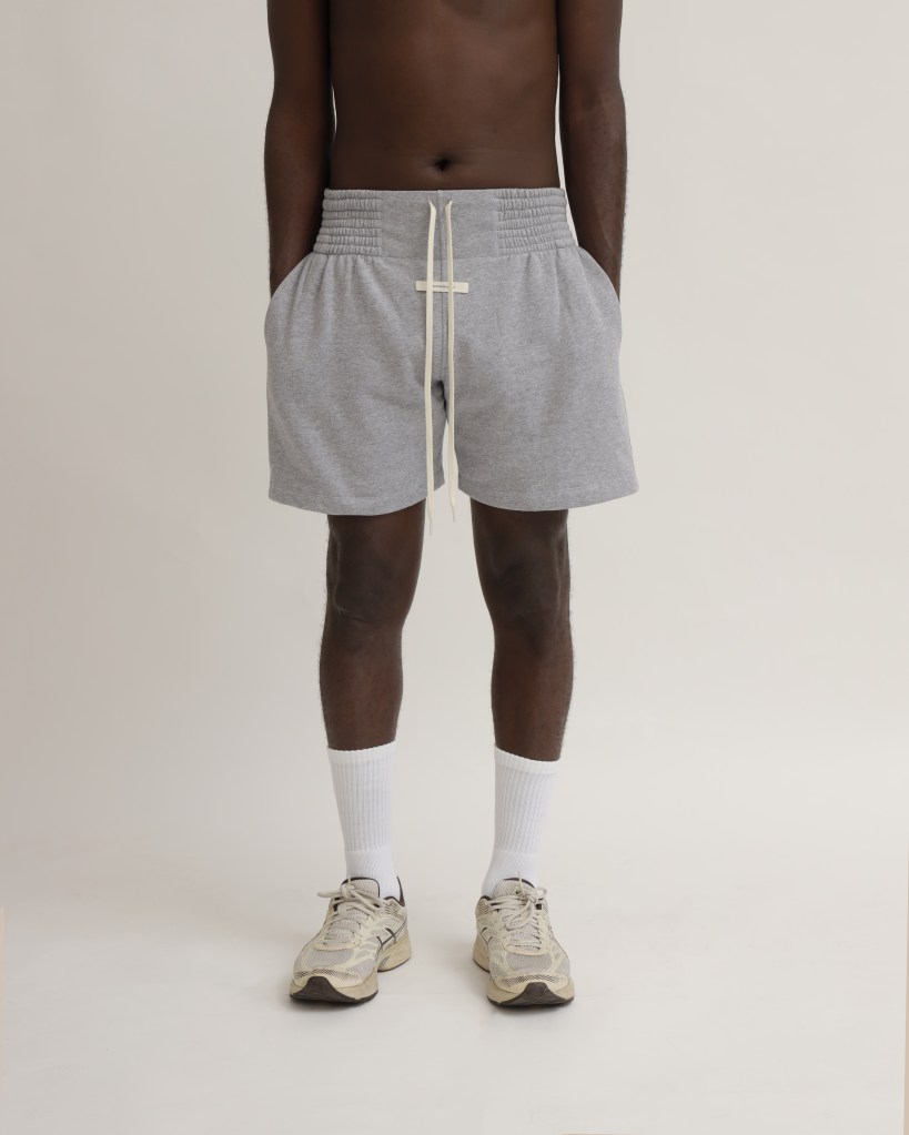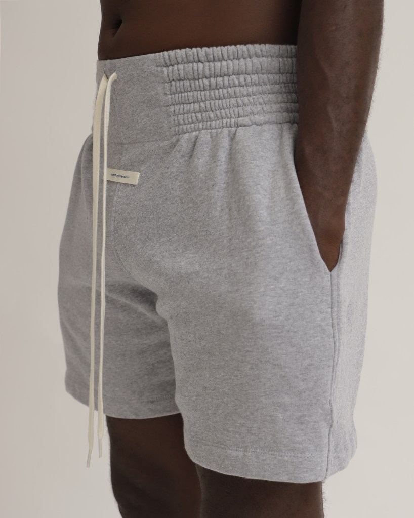 This basic shorts channel a boxing vibe, designed with a slightly wide leg opening falling just before the knee with signature elongated drawstrings. Cut from pure cotton feature a relaxed fit, “madeforkithandkin” branding on the front, and elastic bands at the waist.