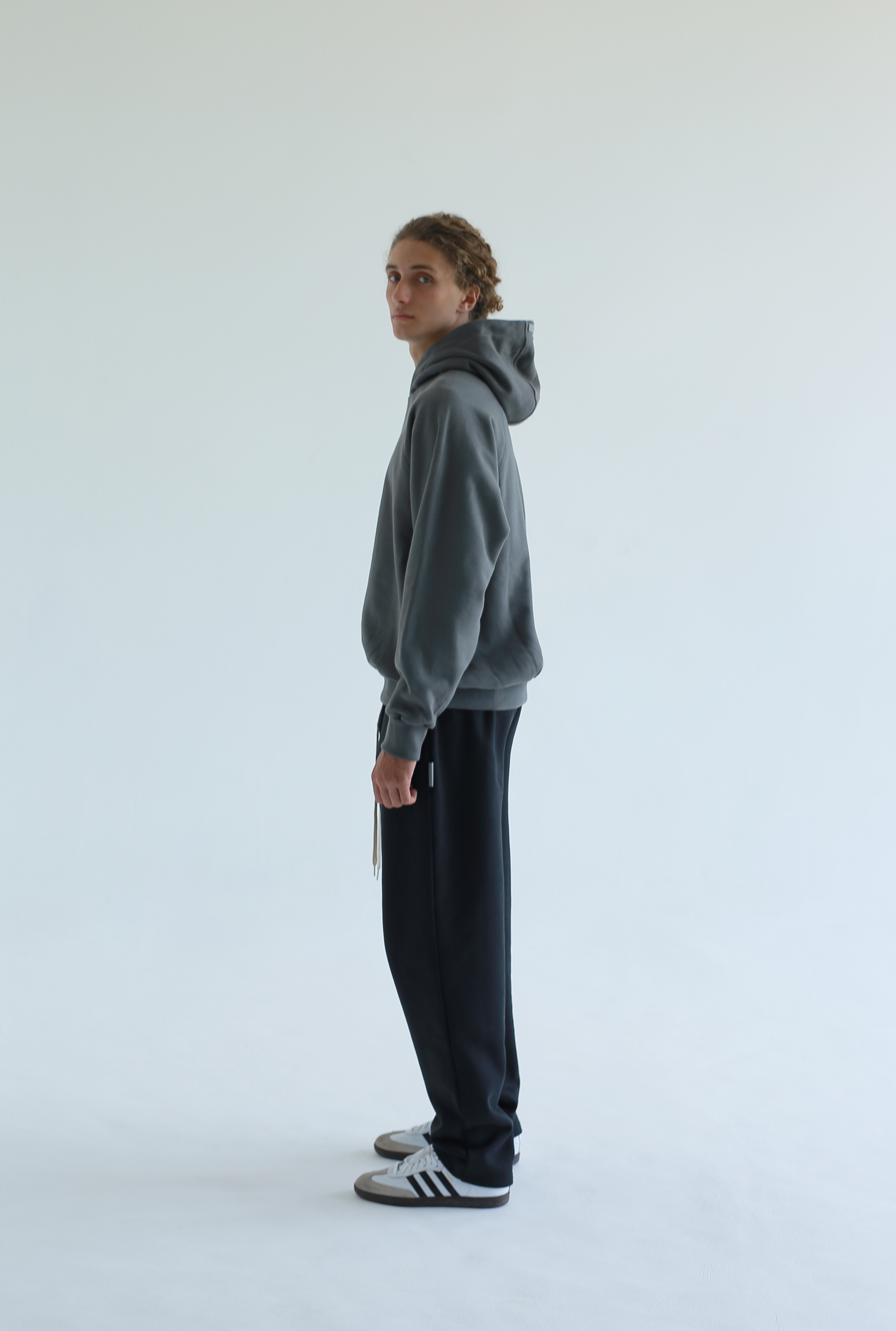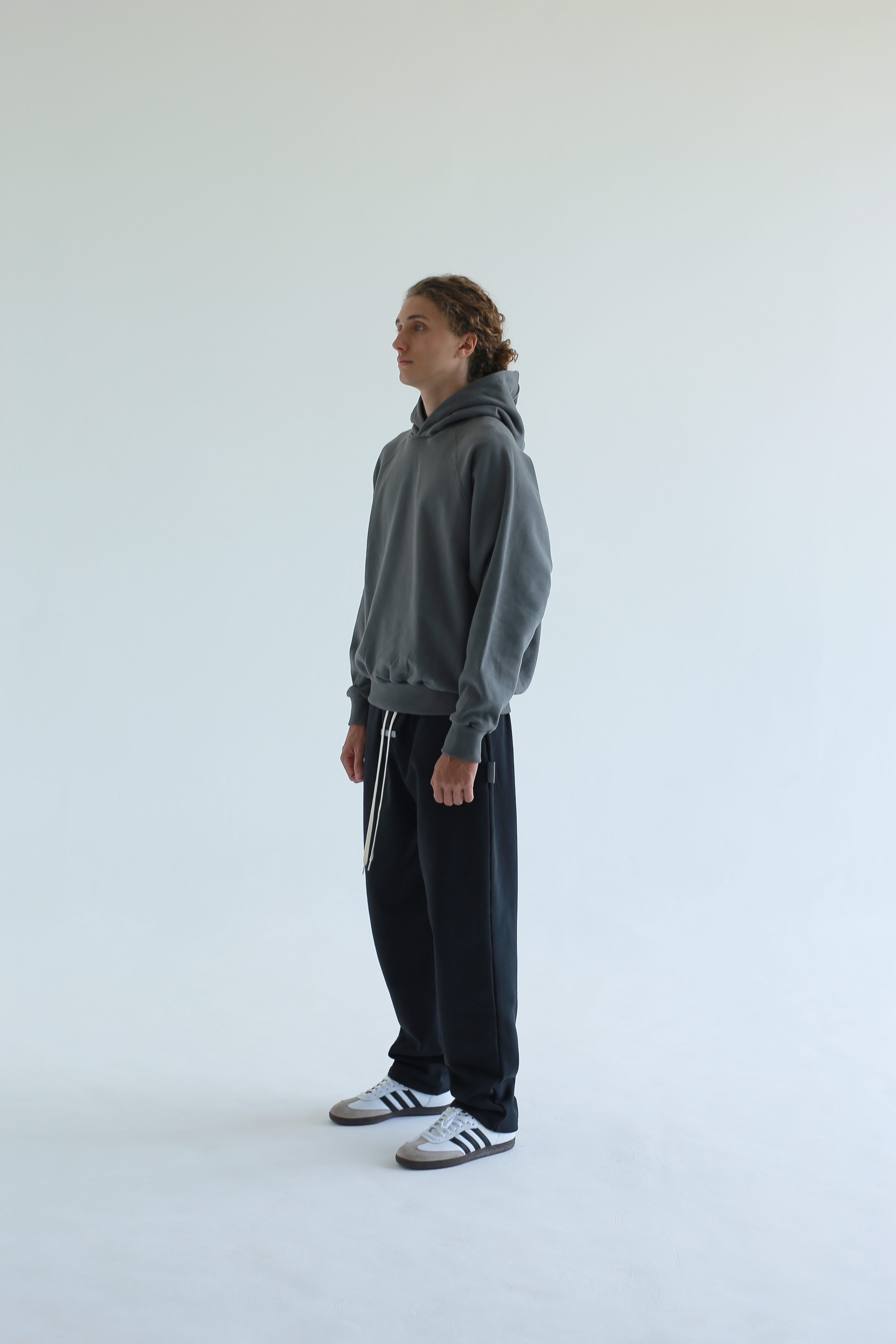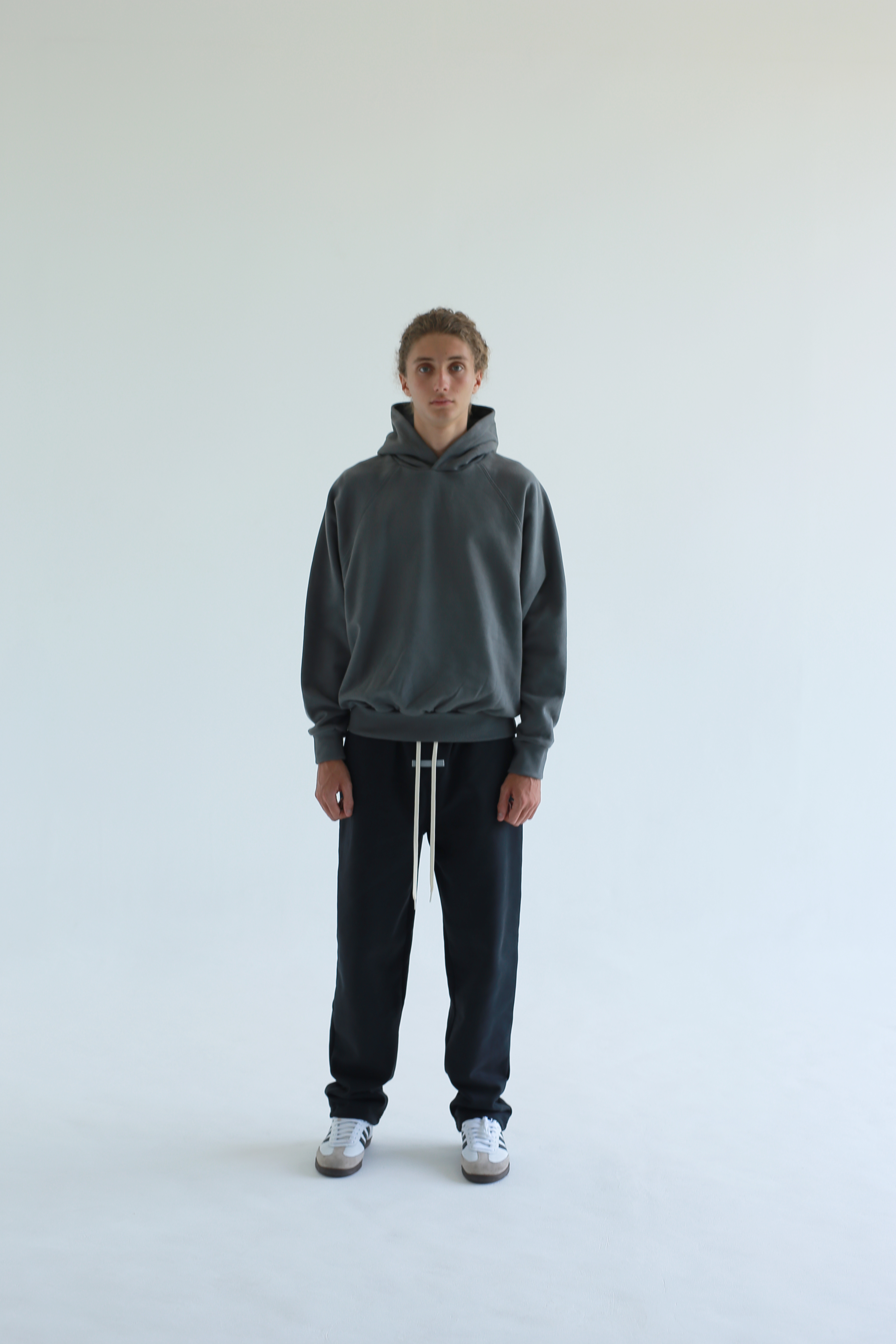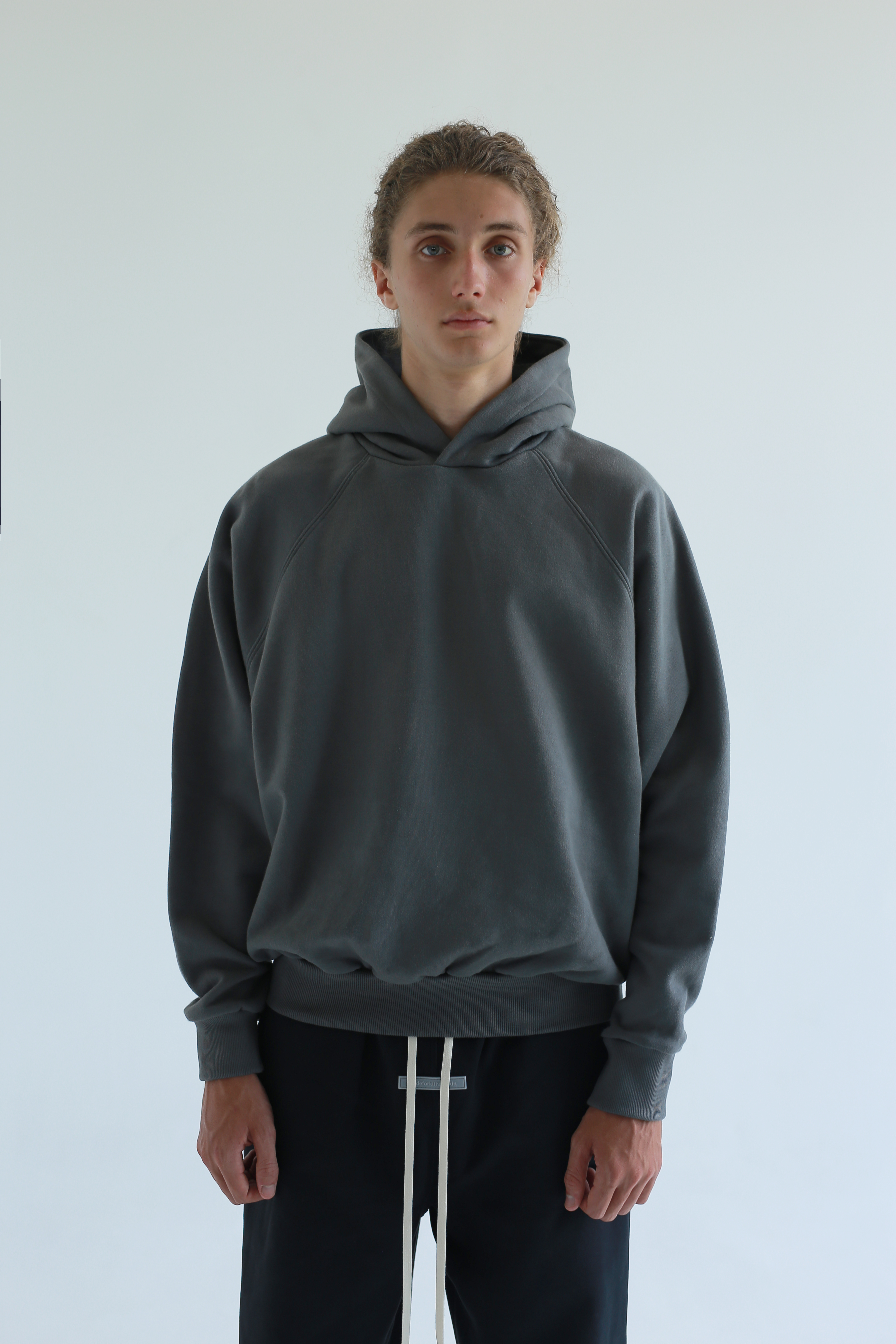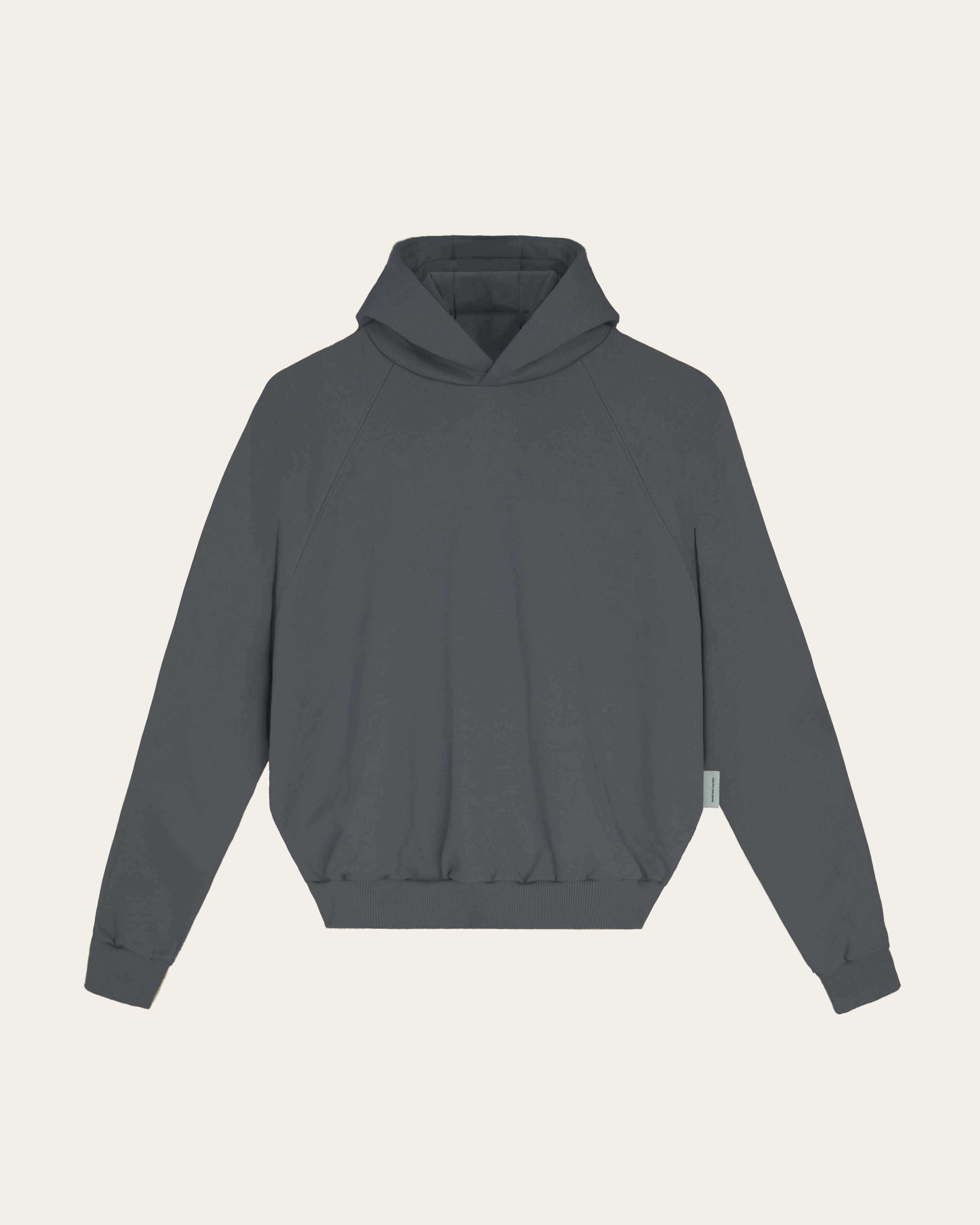 CLASSIC RAGLAN HOODIE – GUNMETAL 375 GSM / 13.5 OZ HEAVY FLEECE VINTAGE CUT – RELAXED FIT (LOOSE) RUBBERIZED LOGO PATCH AT HOOD Signature gray label on left side seam pure cotton