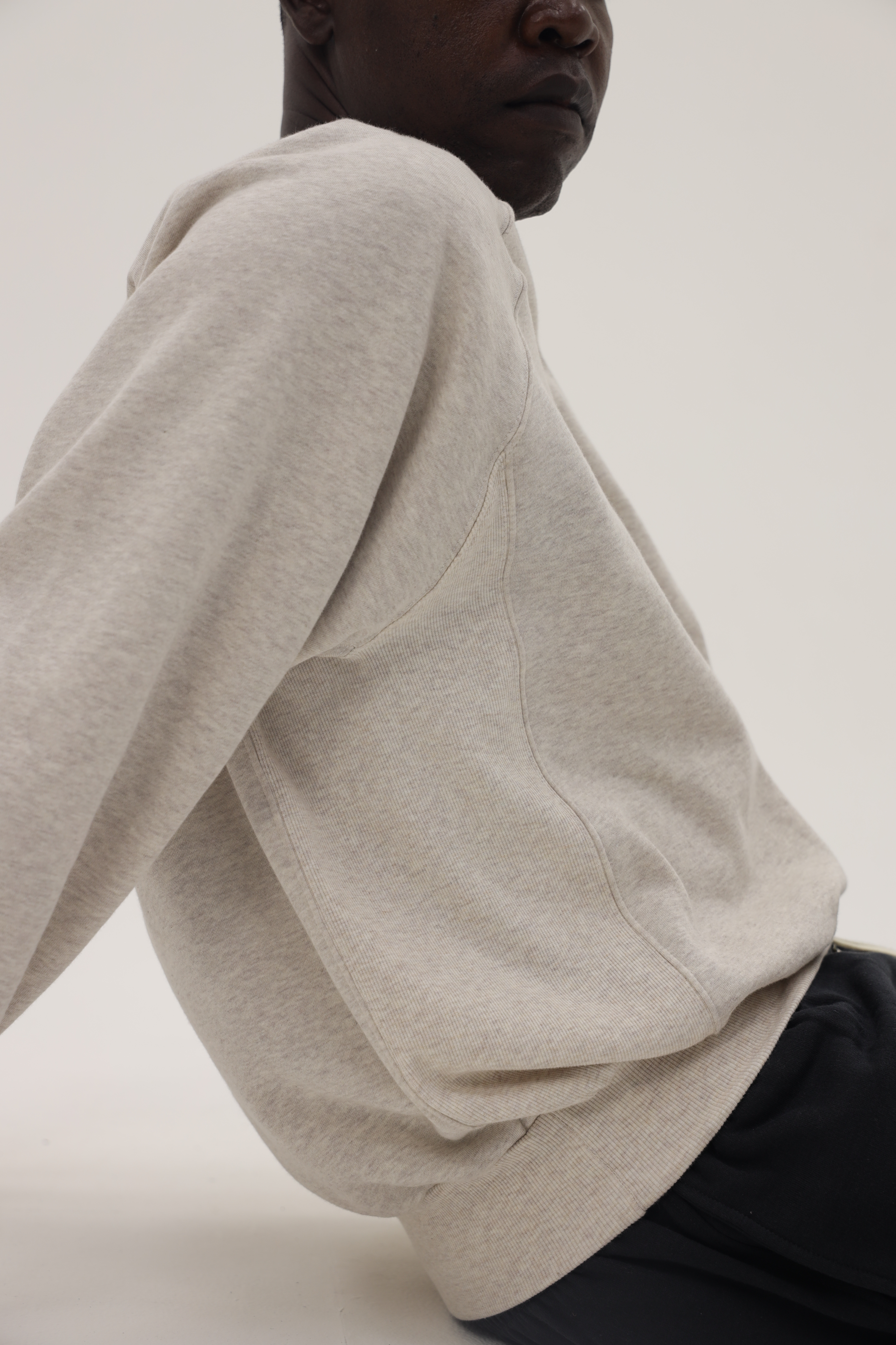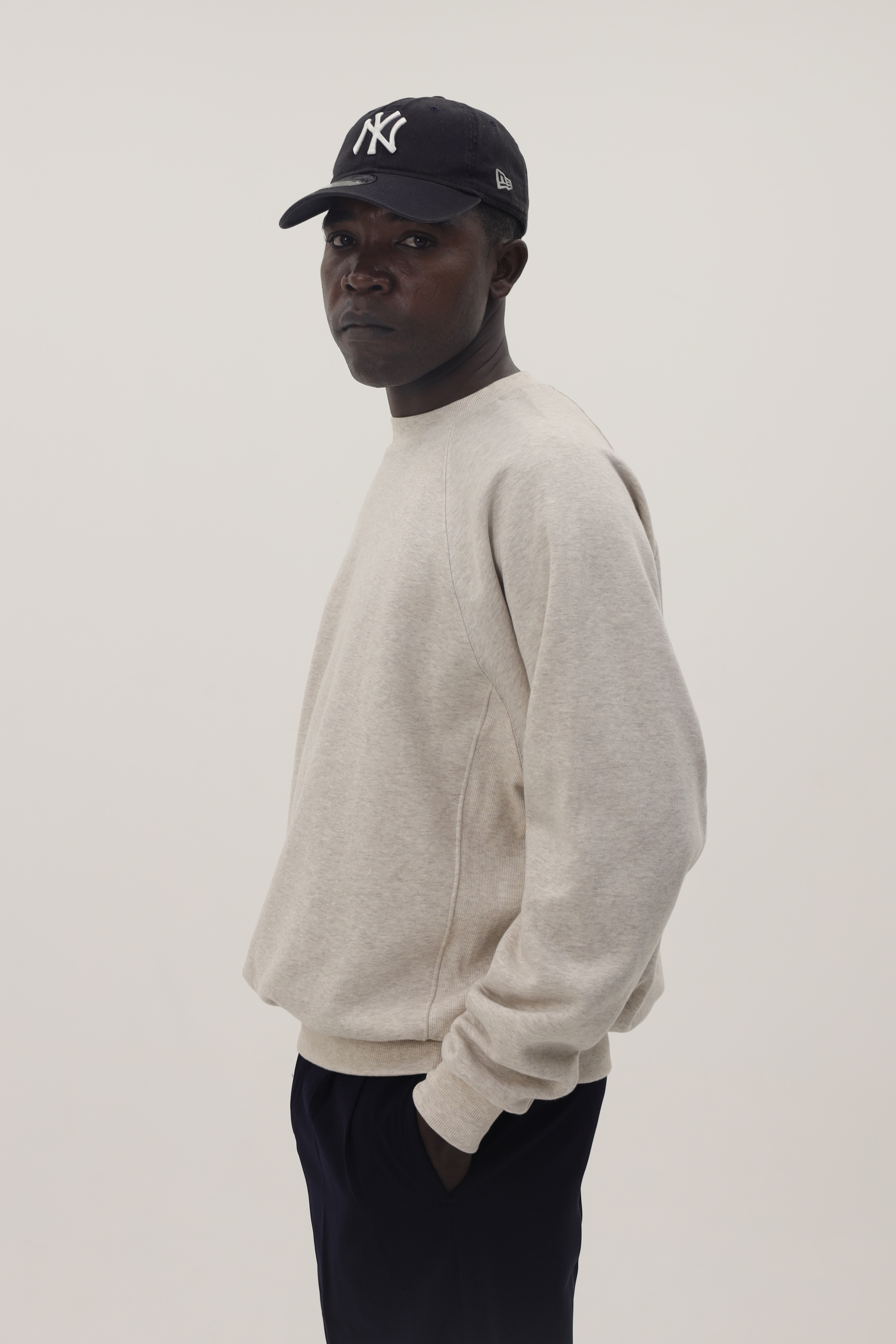 90s-inspired raglan sweatshirt, with double-stitched construction, and industrial-strength ribbed panels on both sides.